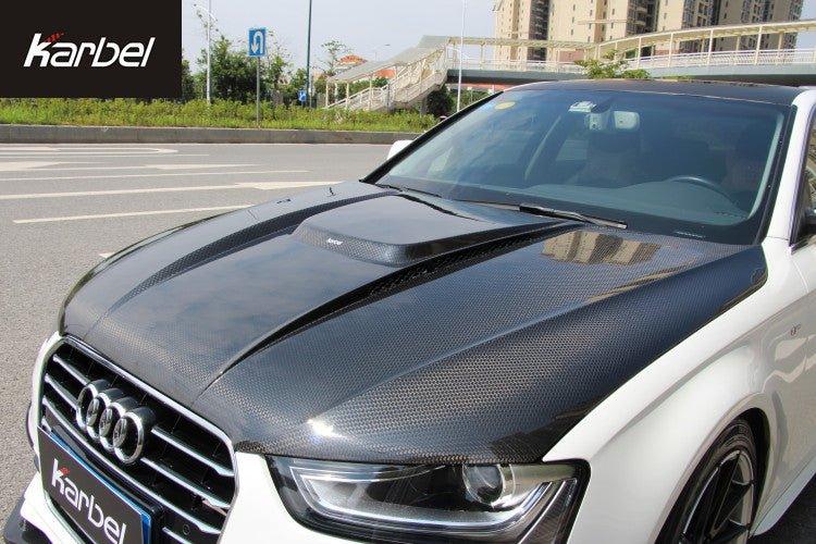 Upgrade Your Audi RS4 S4 A4 S-line B8.5 2013 2014 2015 2016 with Aftermarket Parts - Hood Pre-preg Carbon Fiber from Karbel Carbon