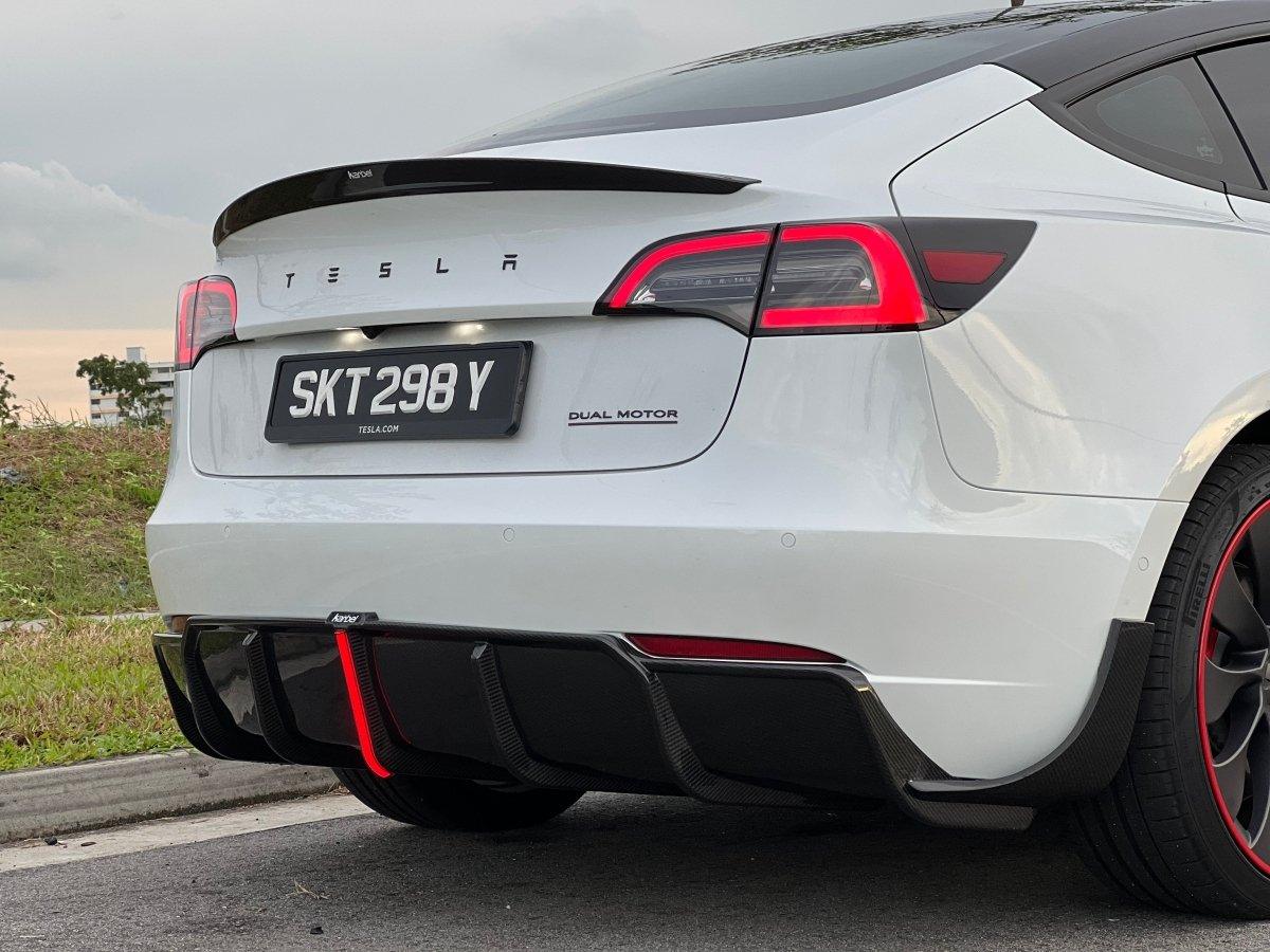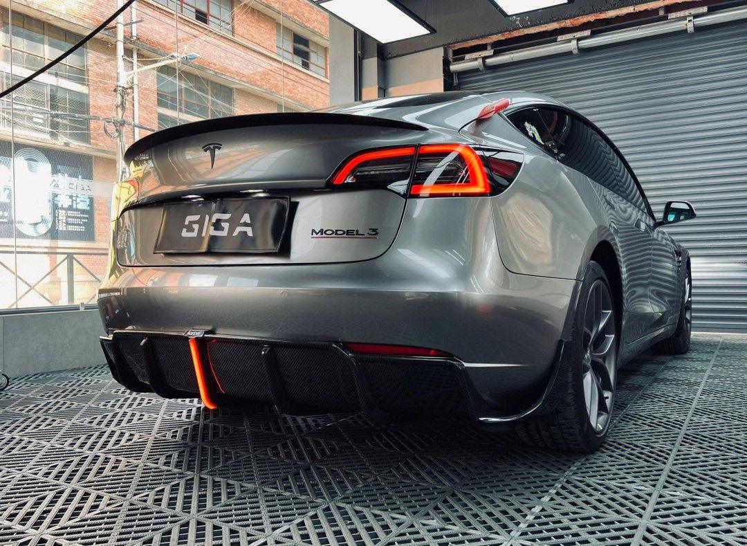 Upgrade Your Tesla Model 3/P 2017 2018 2019 2020 2021 2022 2023 with Aftermarket Parts - Rear Diffuser & Canards Pre-preg Carbon Fiber from Karbel Carbon