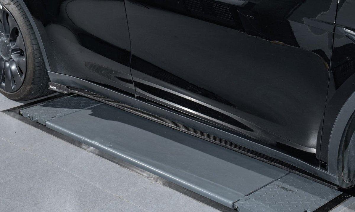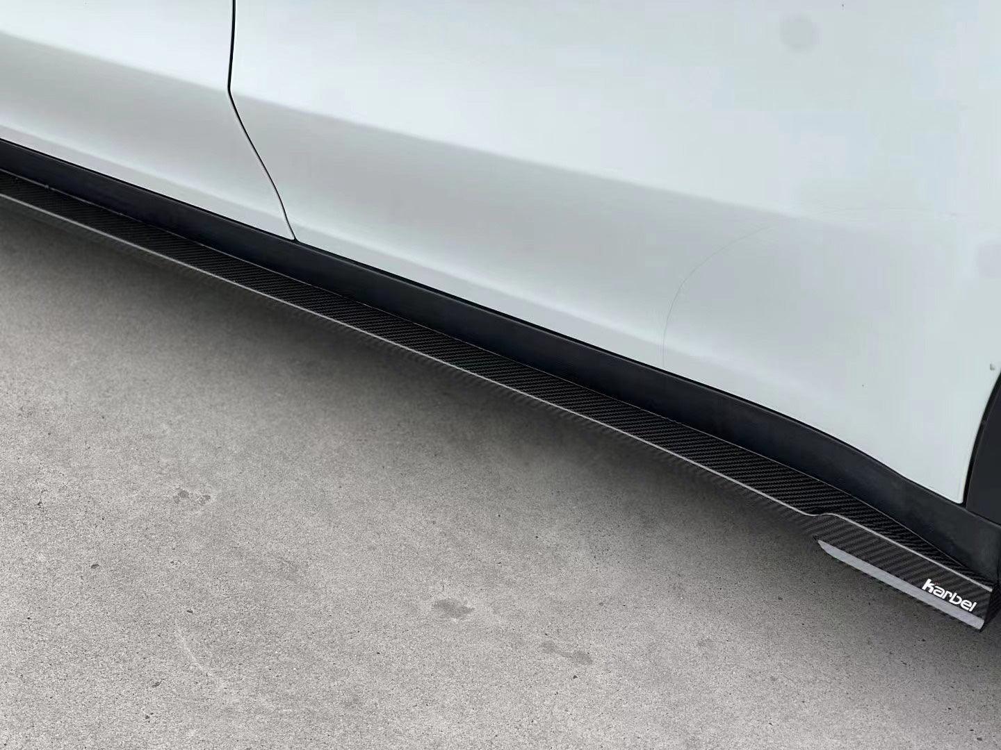 Upgrade Your Tesla Model Y 2020 2021 2022 2023 2024 2025 with Aftermarket Parts - Side Skirts Pre-preg Carbon Fiber from Karbel Carbon
