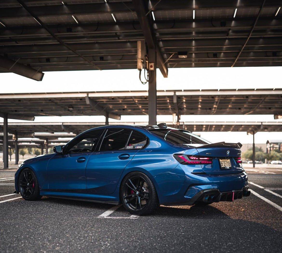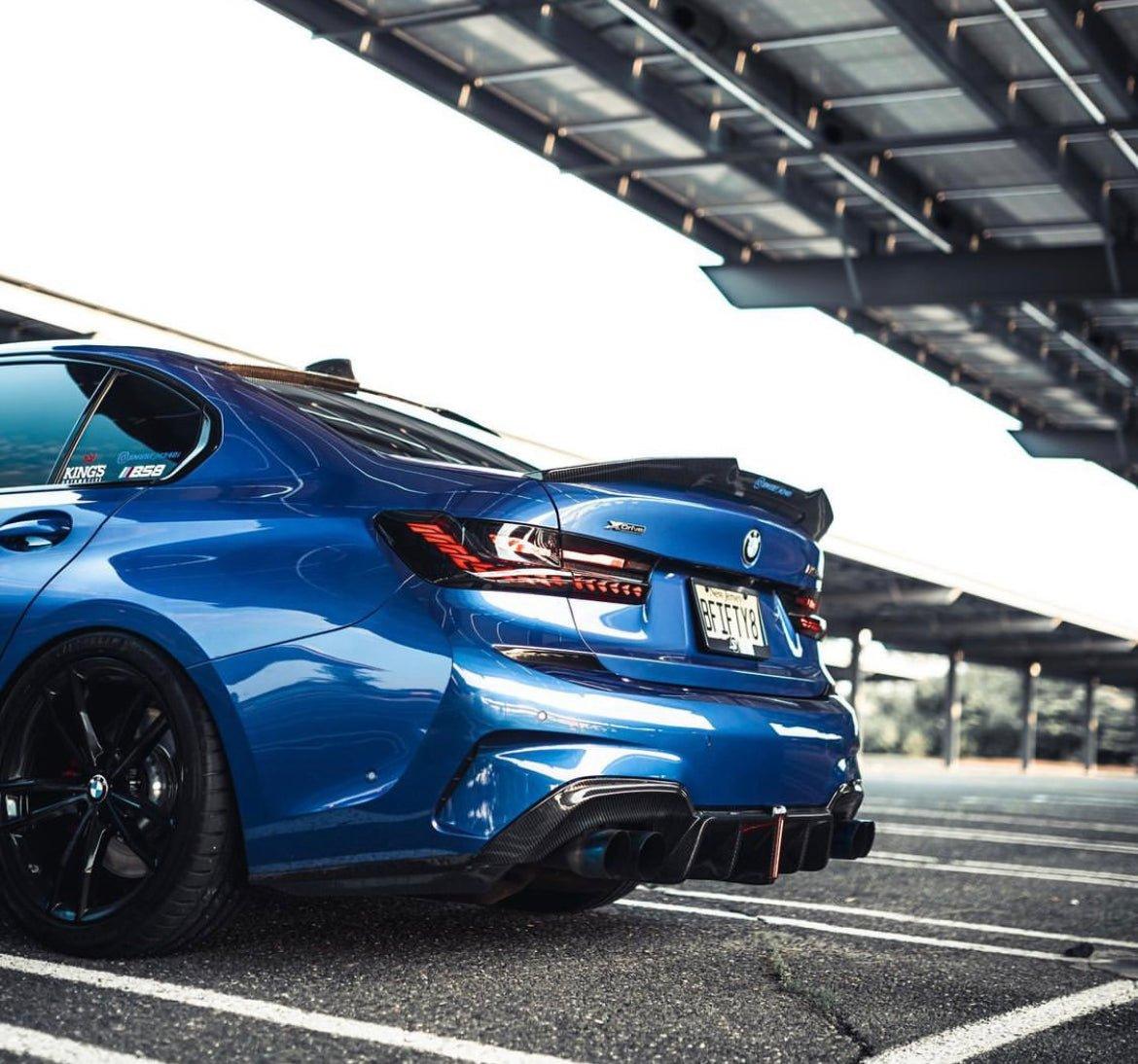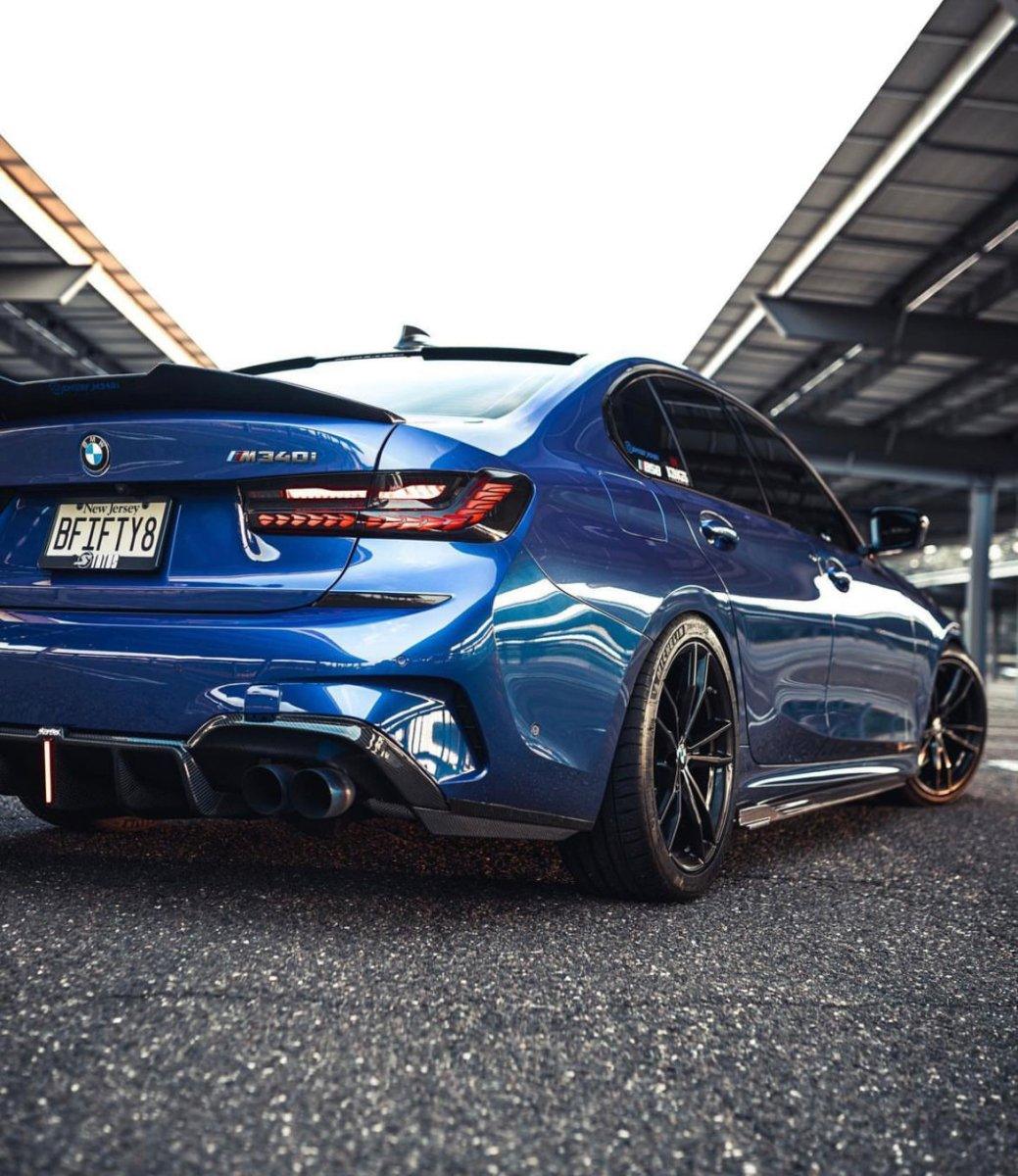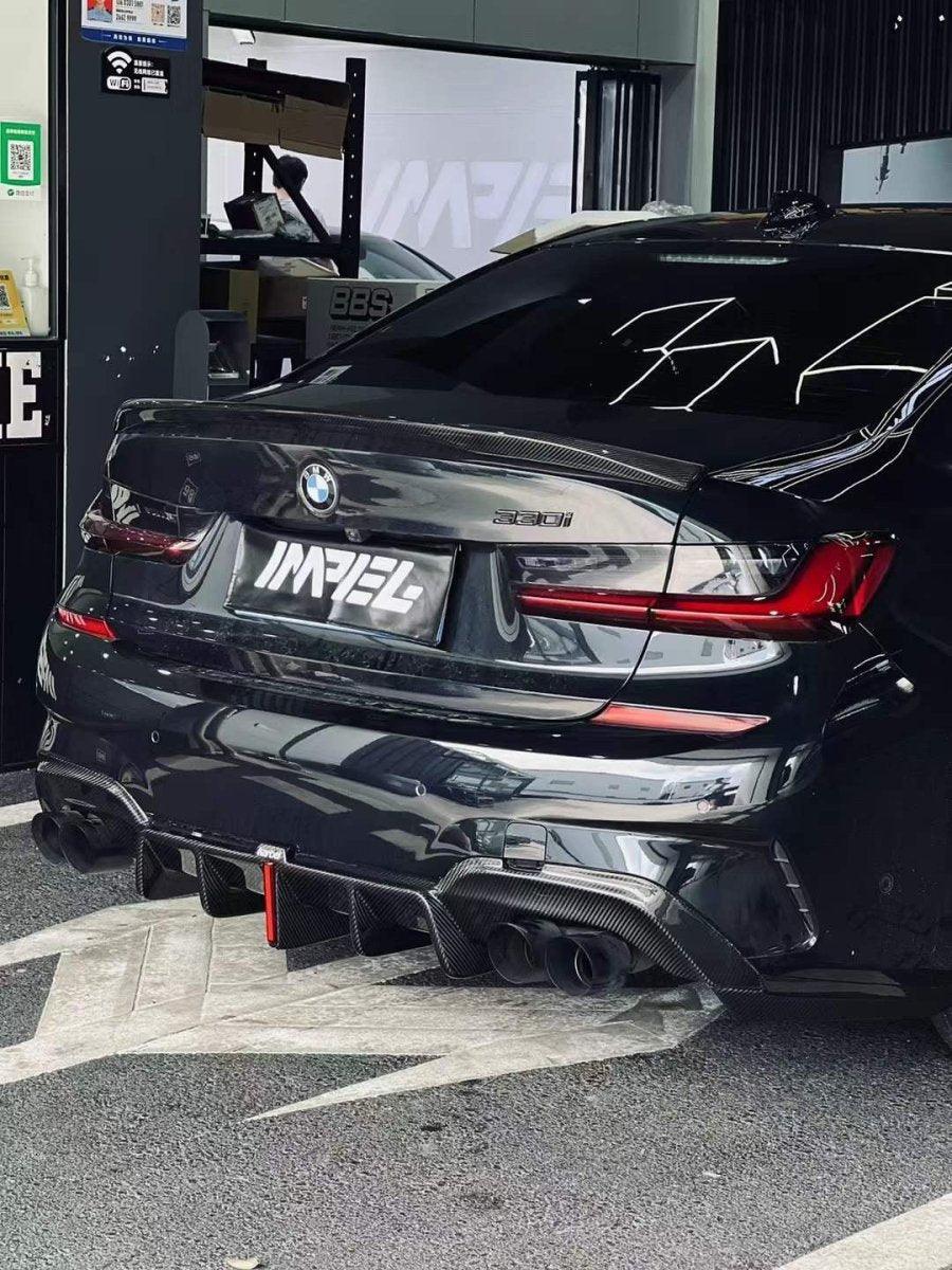 Upgrade Your BMW 3 Series 330i (with M-package bumper, does not fit base model) M340i G20 G21 Pre-LCI 2019 2020 2021 2022 with Aftermarket Parts - Rear Diffuser & Canards Pre-preg Carbon Fiber from Karbel Carbon