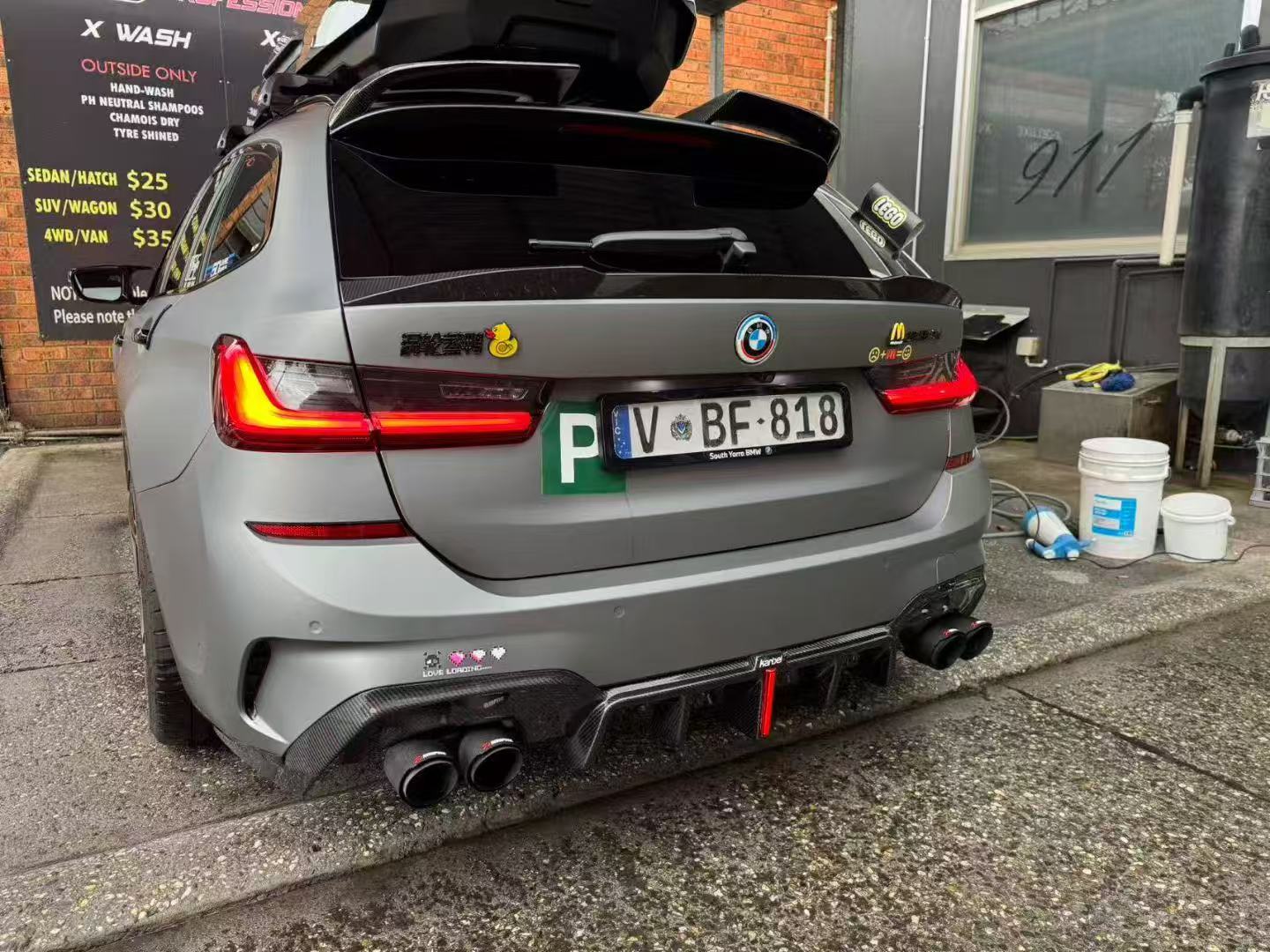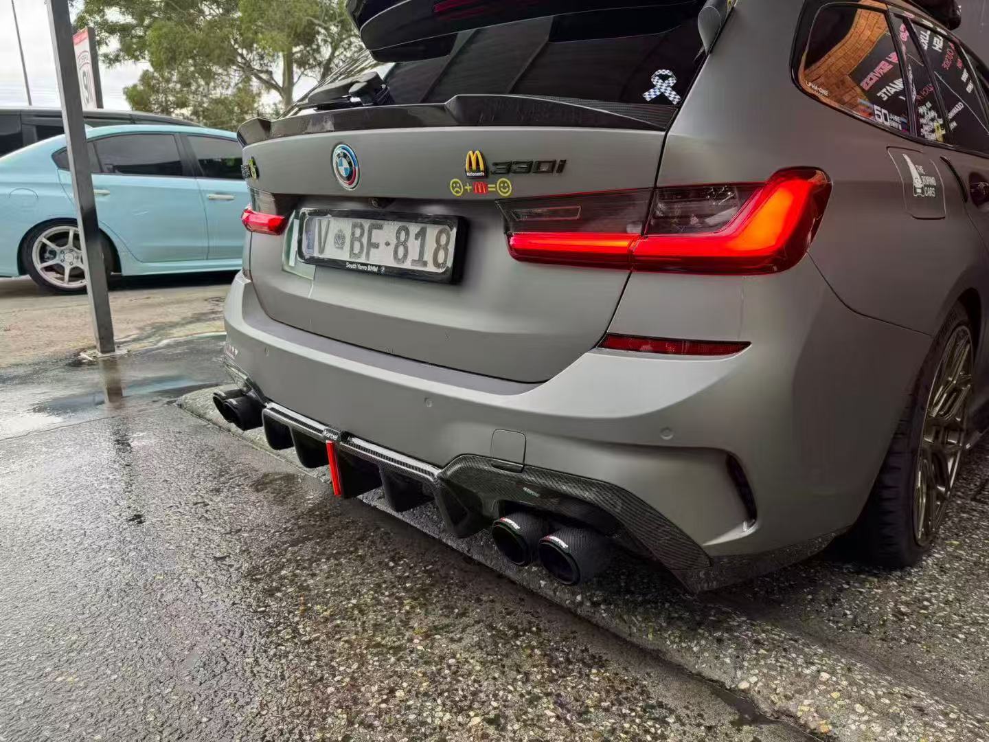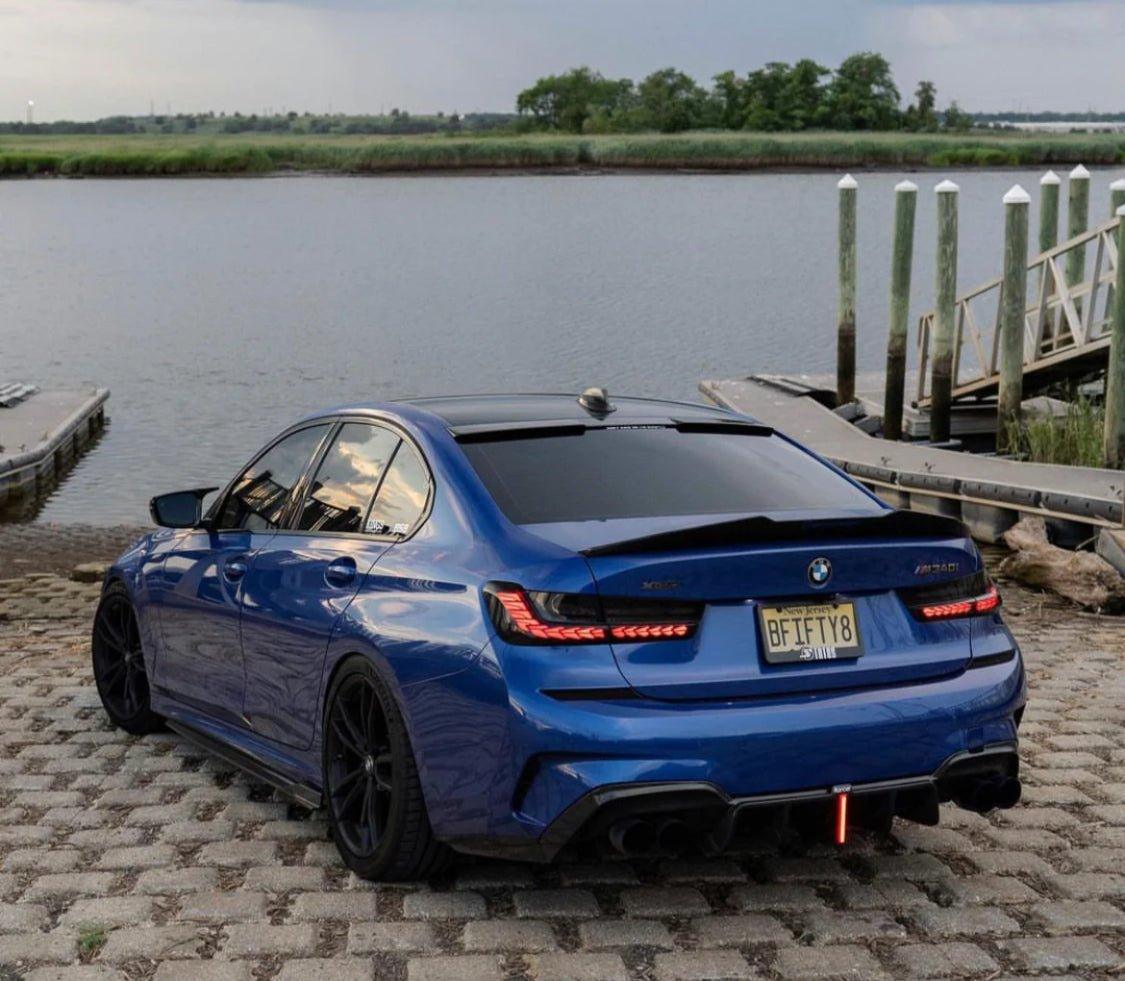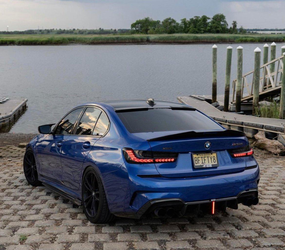 Upgrade Your BMW 3 Series 330i (with M-package bumper, does not fit base model) M340i G20 G21 Pre-LCI 2019 2020 2021 2022 with Aftermarket Parts - Rear Diffuser & Canards Pre-preg Carbon Fiber from Karbel Carbon