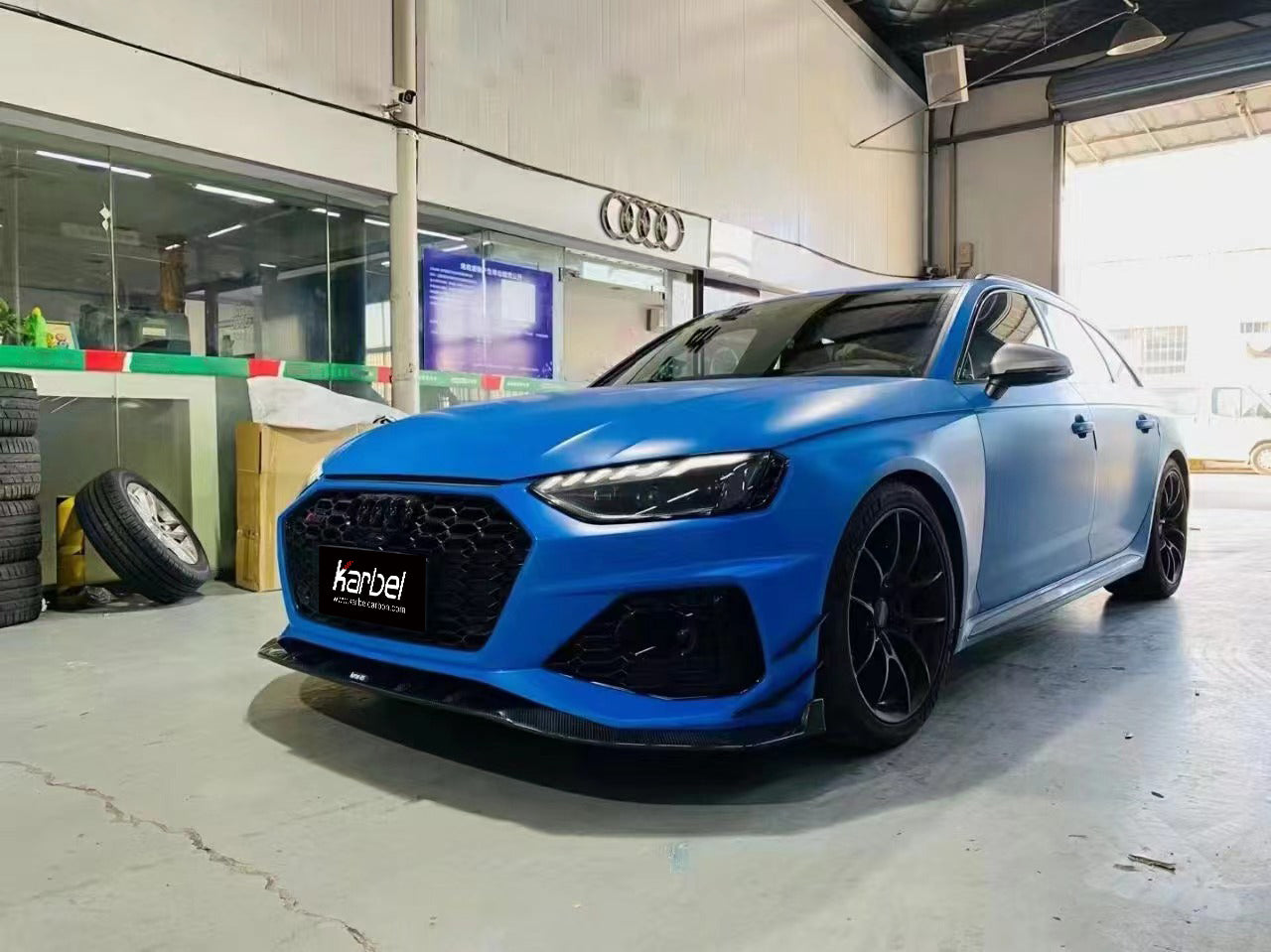 Upgrade Your Audi RS4 B9.5 2020 2021 2022 2023 2024 with Aftermarket Parts - Front Lip Pre-preg Carbon Fiber from Karbel Carbon